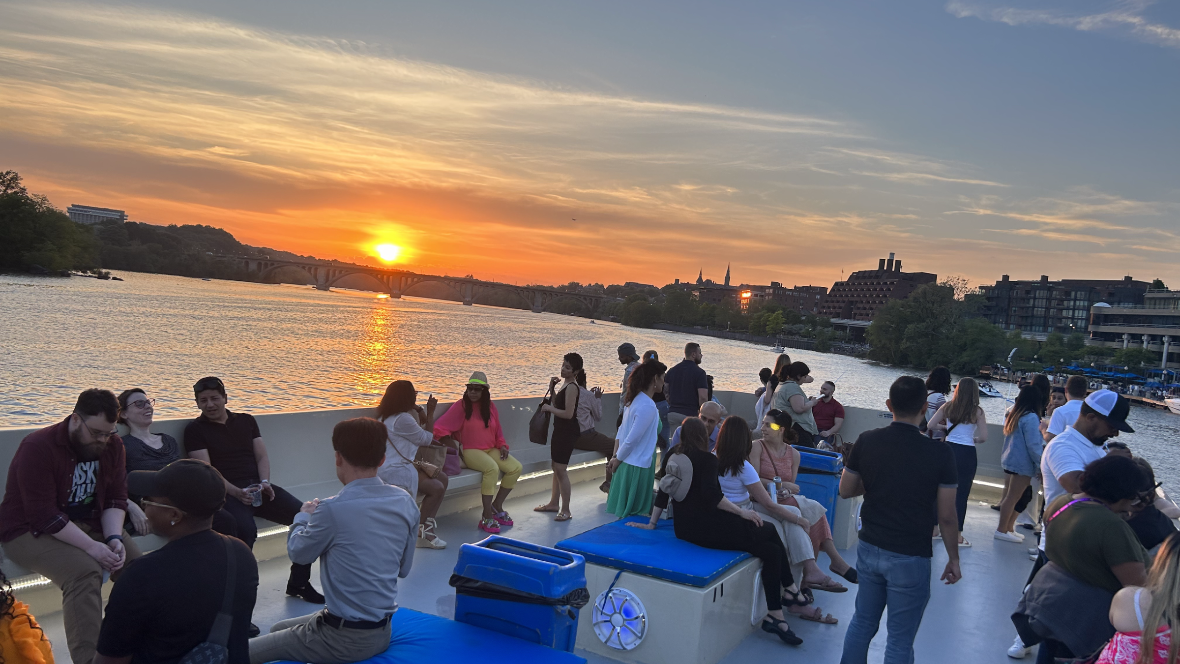 On the big day, the Boomerang Bus rolled up to the Real World mansion in DuPont Circle to pick up the cast. It then transported them to a historic yacht docked at the Gang Plank Marina in SW Washington. The event was a true spectacle, featuring an open bar, catering, and a DJ to set the mood as fireworks lit up the night sky above. The proximity of the National Monument during the show was simply unbelievable!